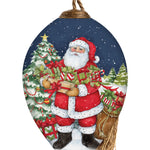 Christmas Morning Santa with Gifts Hand-Painted Glass Ornament