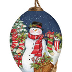 Christmas Morning Snowman with Gifts Hand-Painted Glass Ornament