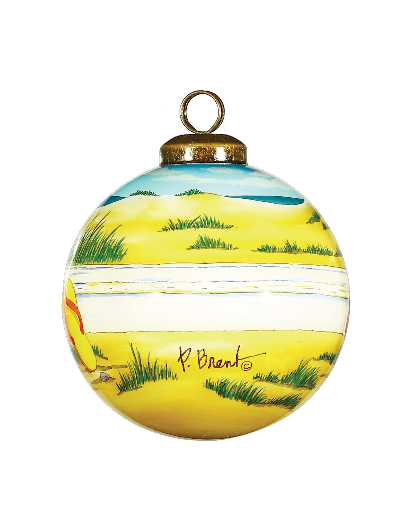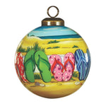 - This stunningly beautiful Flip Flop Beach-themed glass ornament is the perfect way to add color and beach vibes to any home or office! The hand-crafted ornament features vibrant, colorful flip-flops on a sand beach, providing a refreshing touch of summer and a reminder of days spent by the shore. Bring the beach to your space!