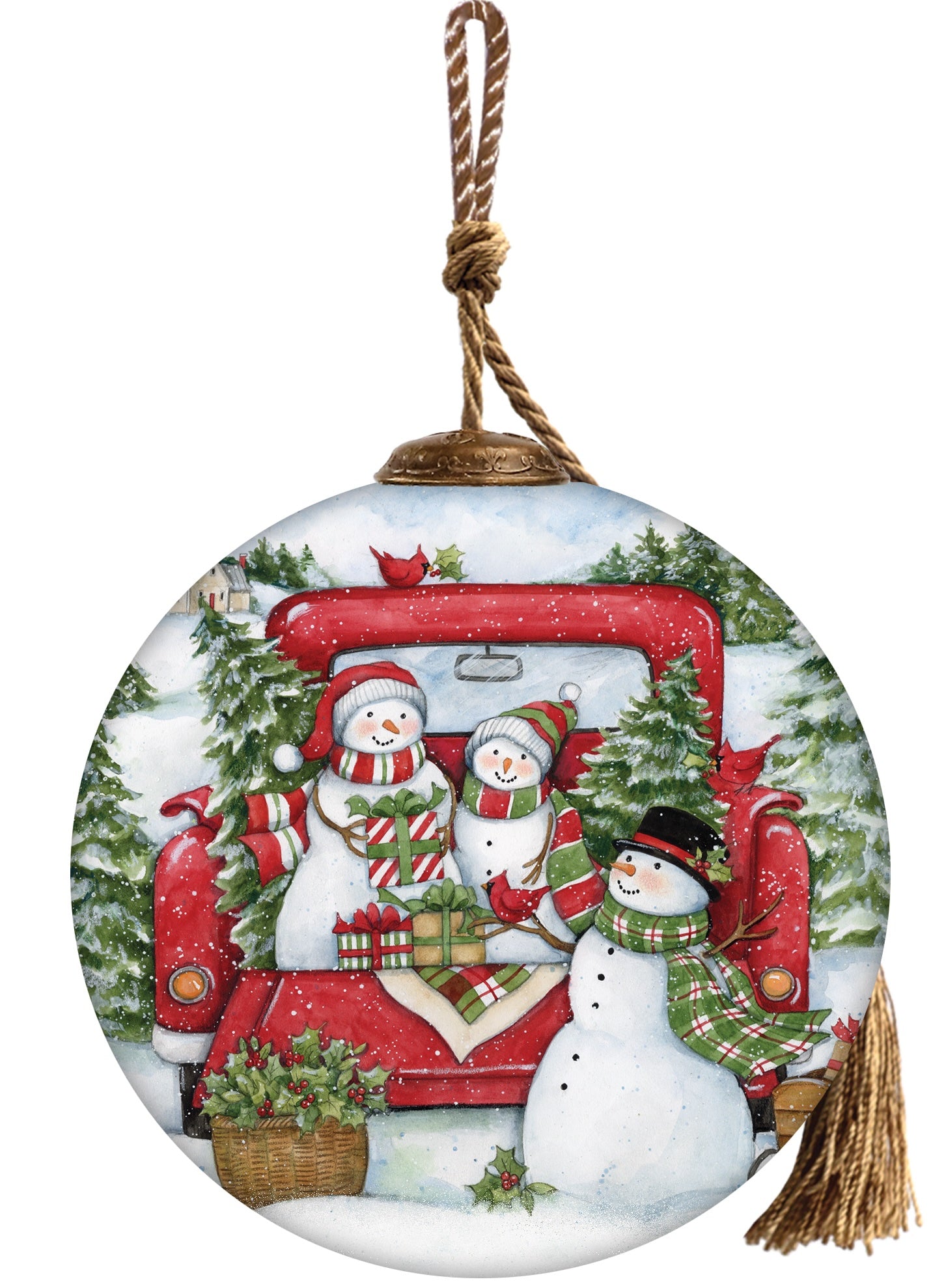 This Inner Beauty ornament is intricately hand-painted on the inside of mouth-blown glass using the ancient technique of reverse hand-painting. Each image is created using thousands of delicate paint strokes applied to the inside surface of the glass resulting in a truly unique work of art. Each ornament is beautifully packaged in suede gift box which includes a full-color story card describing the technique of this ancient art form. 4" diameter round shape. This ornament features the licensed original artwork of artist ©Susan Winget