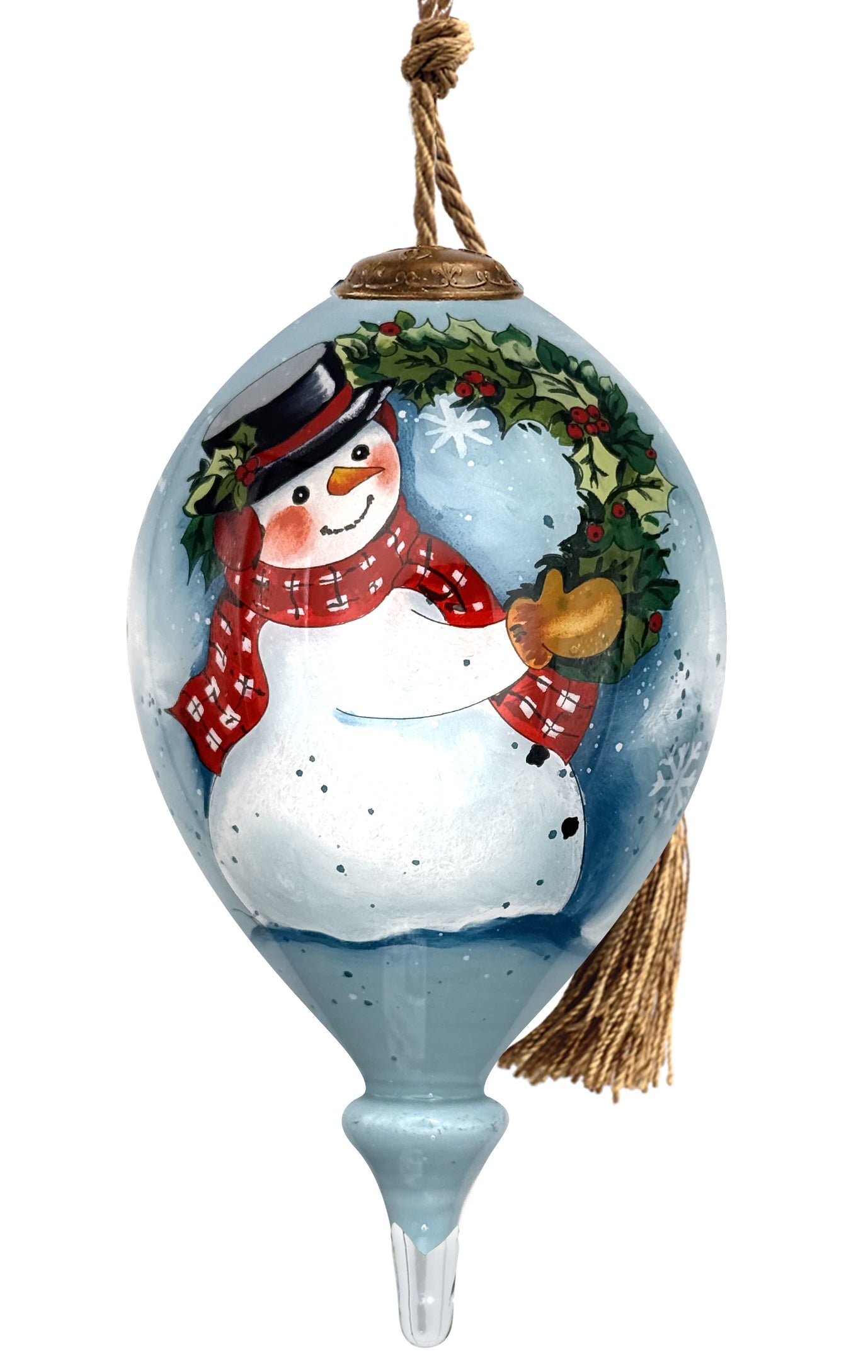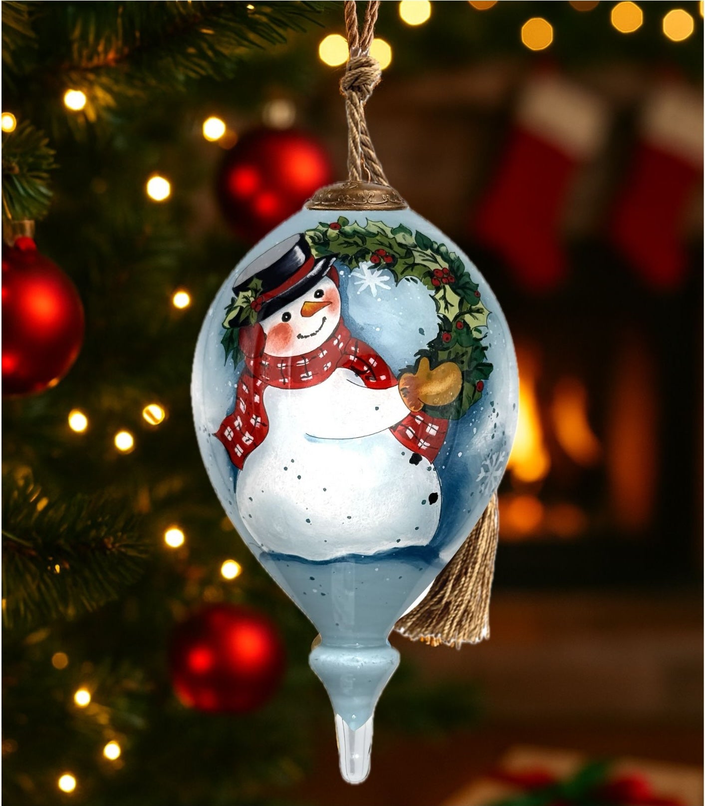 Hand-Painted Snowman Glass Ornament – “Warmest Wishes” Christmas Collectible