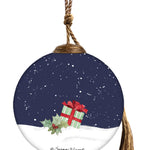 Feel the excitement of Christmas morning every time you look at this delightful "Ho Ho Ho Santa" glass ornament. Hand-painted with vibrant colors, this ornament features a jolly Santa Claus, joyfully laughing as he holds a festively wrapped present under a snowy night sky. Perfect for those who love the classic charm of Santa and the magic of Christmas, this ornament will transport you back to those heartwarming childhood memories of holiday anticipation. Whether adorning your tree or gifting to a loved one, this ornament brings timeless joy to your holiday celebrations. Add it to your collection today and let the merriment begin! Order yours now and let Santa bring joy to your holiday season!