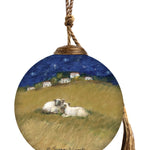 Bring the serene and calming essence of the Christmas nativity to your home with this beautifully illustrated glass ornament. The artwork depicts baby Jesus peacefully sleeping in a manger, surrounded by gentle lambs under the radiant light of a glowing star. Perfect for those who cherish the simplicity and purity of the Christmas story, this ornament will add a meaningful and spiritual touch to your holiday decorations. It makes an ideal gift for friends and family who treasure the true meaning of Christmas.