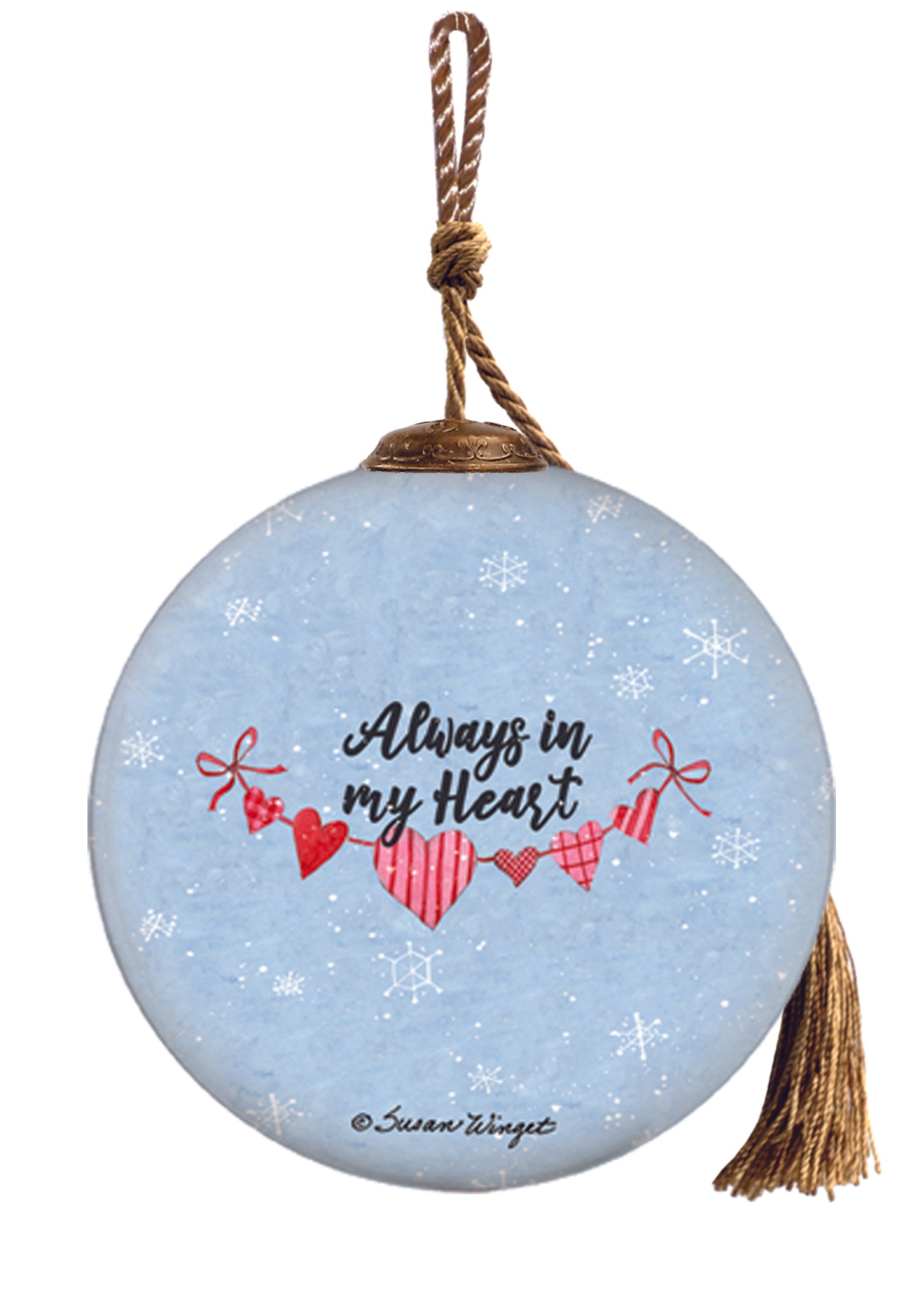 - 3 inch Diameter, Round glass shape, This ornament features the licensed original artwork of artist ©Susan Winget