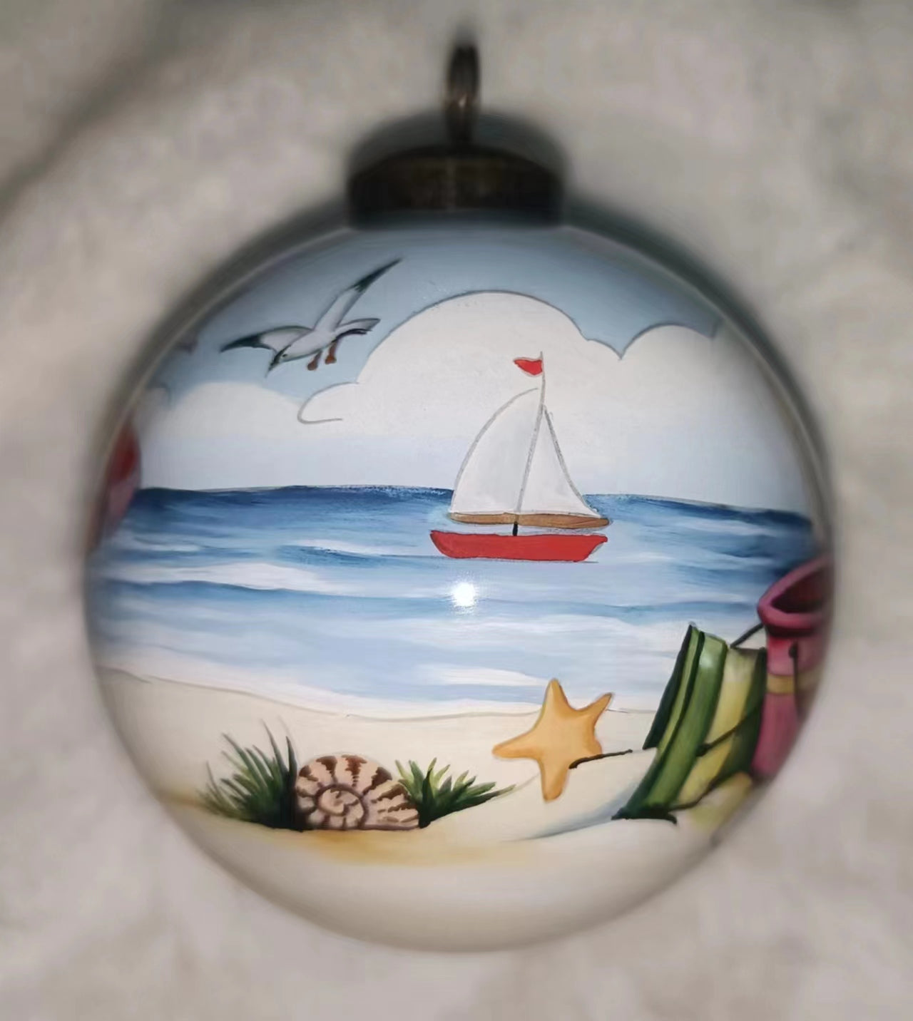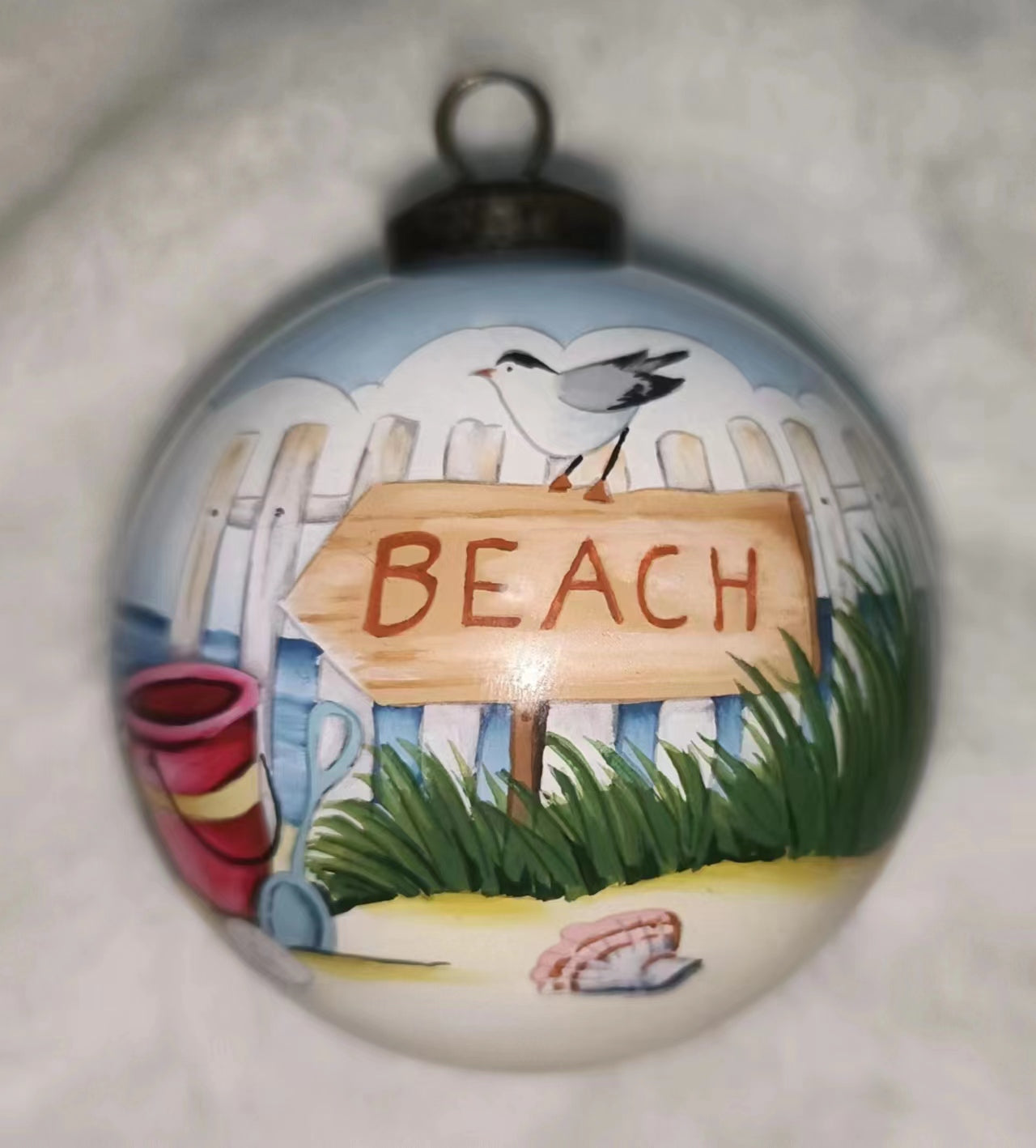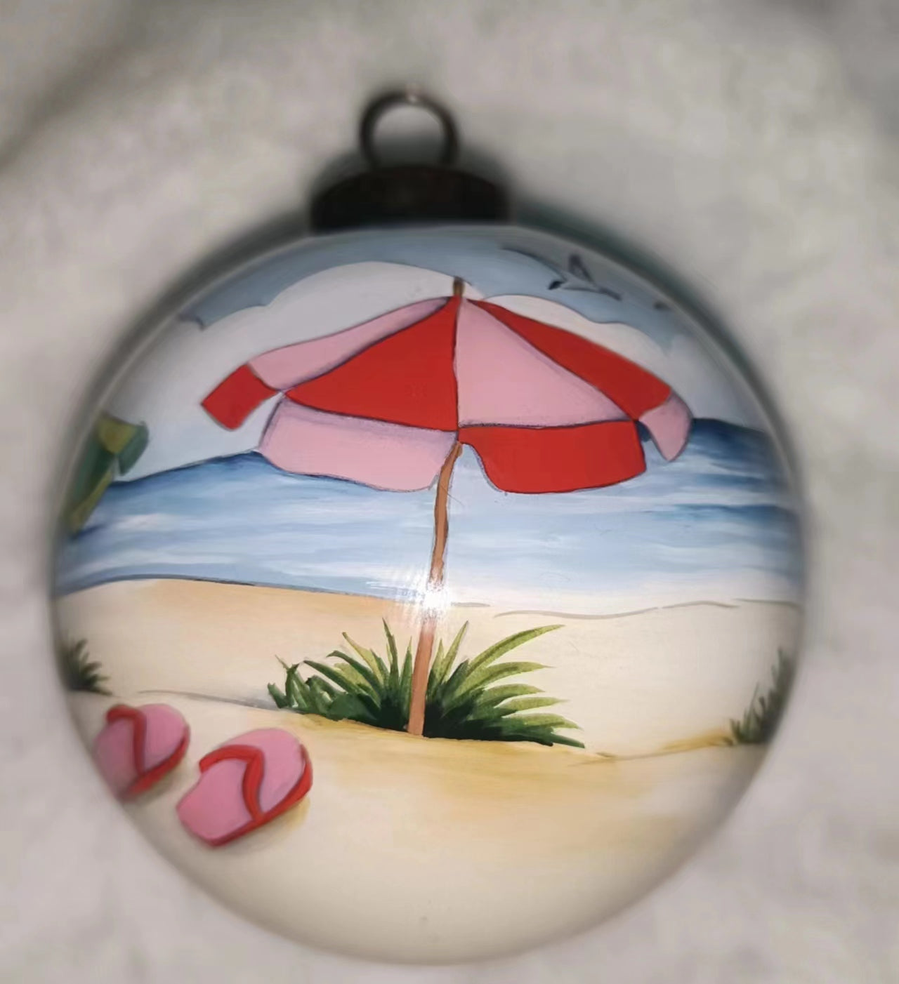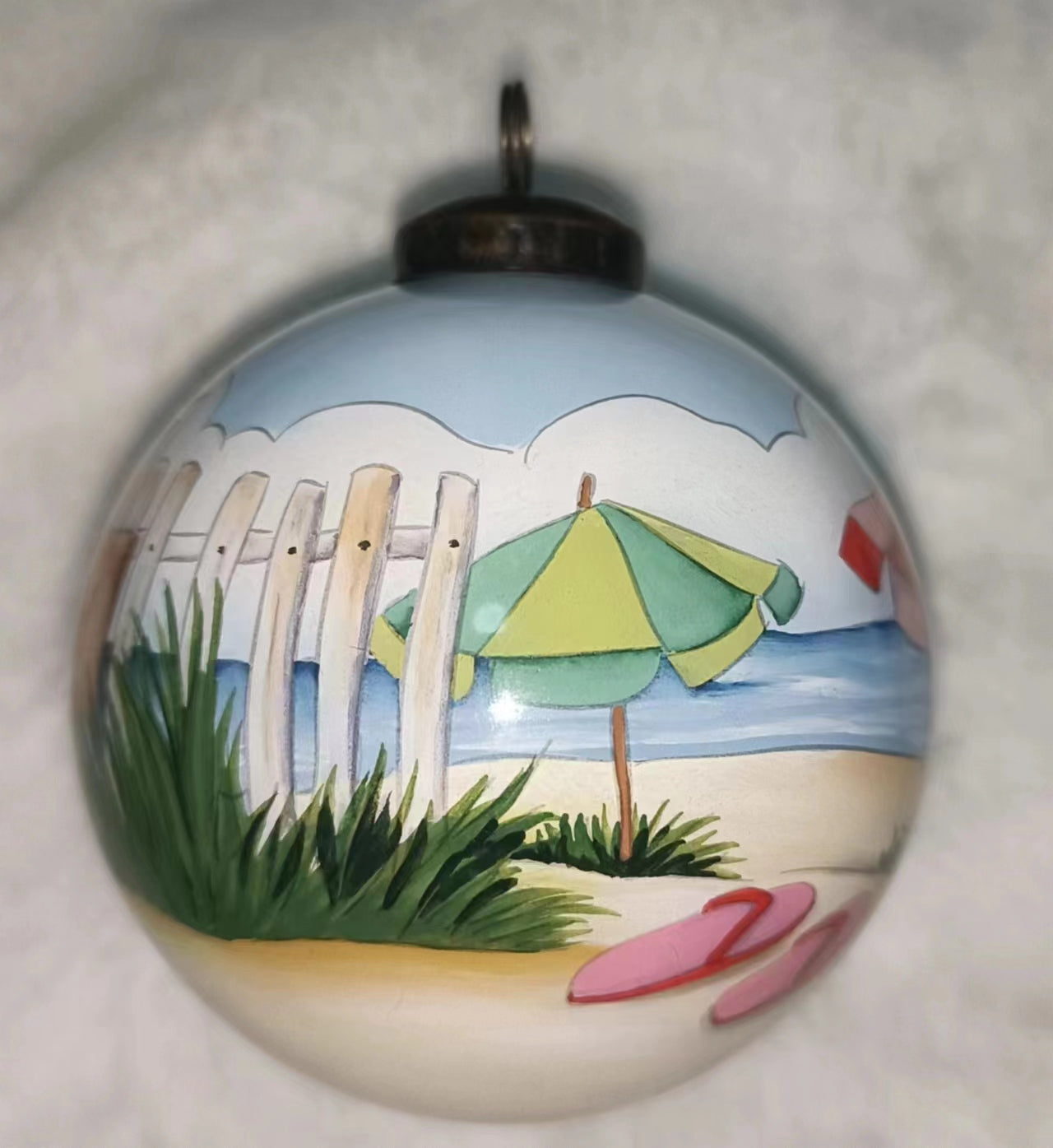 Bring the beach to your home with this beautiful glass ornament! Featuring a beach umbrella, flip-flop, and sandpiper scenery, this ornament is hand-painted for an eye-catching and unique decoration. Make your home the envy of others—get The Best Beach Day Glass Ornament today!
